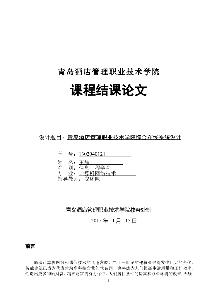 综合布线系统设计课程结业论文.doc