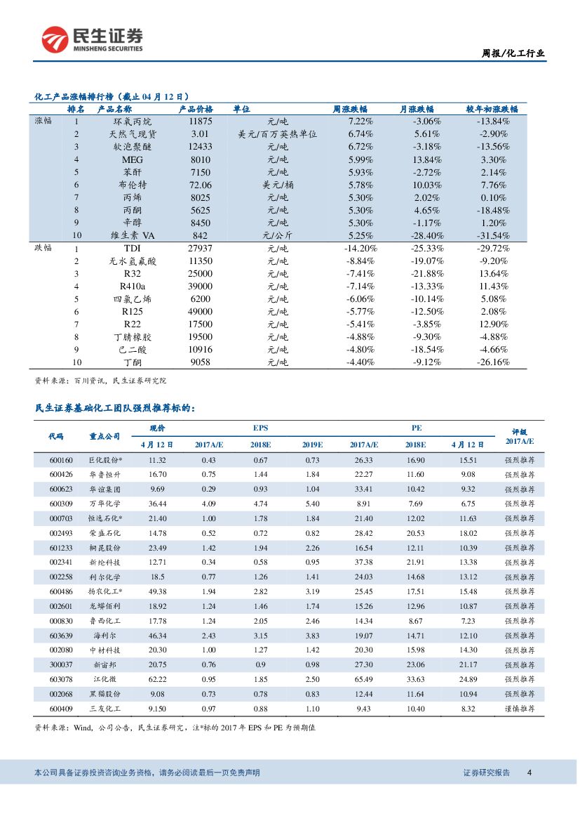 民生证券:民生化工周报:涤纶长丝价格继续上涨,聚合MDI、环氧丙烷价格反弹.pdf