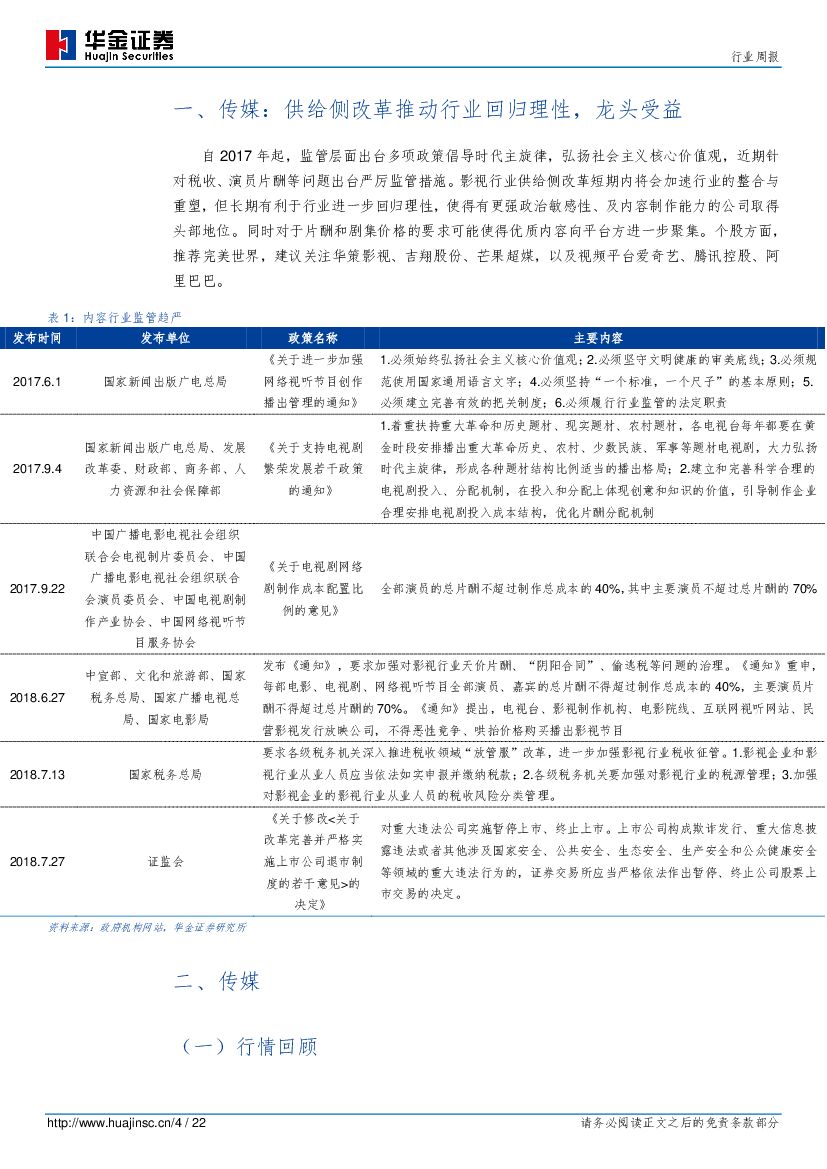 华金证券:传媒行业周报:供给侧改革推动行业回归理性,龙头受益.pdf