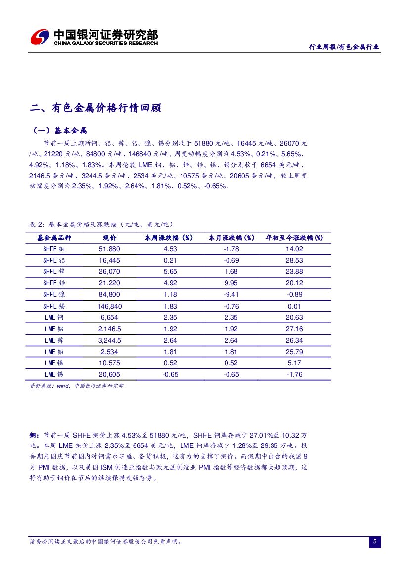 中国银河:有色金属行业周报:经济数据大超预期,有色金属或迎来新一轮行情.pdf