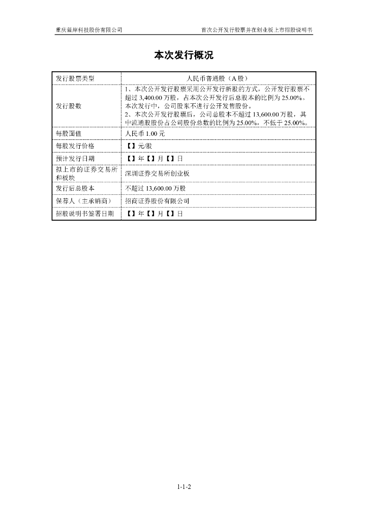 重庆蓝岸科技股份有限公司深交所创业板IPO上市招股说明书.pdf
