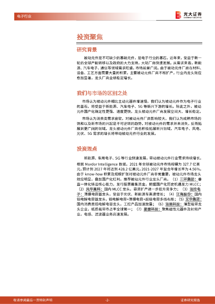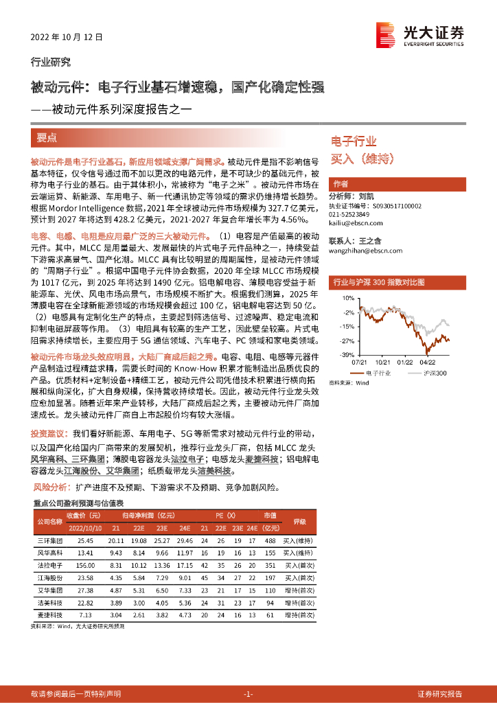 光大证券:被动元件系列深度报告之一:被动元件:电子行业基石增速稳,国产化确定性强.pdf