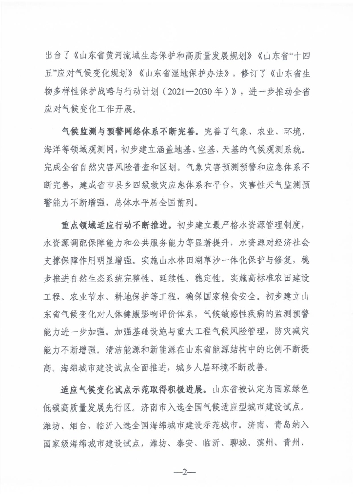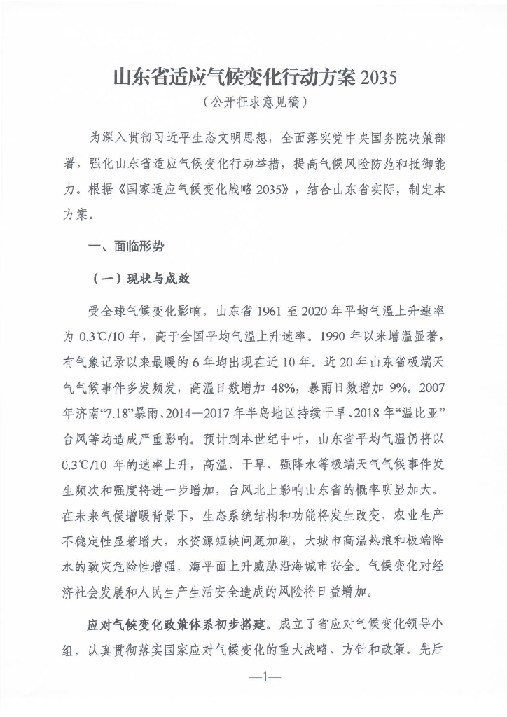 2023年山东省适应气候变化行动方案报告2035(公开征求意见稿).pdf