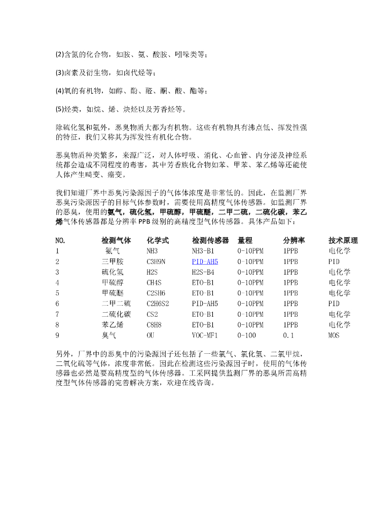 用于厂界监测恶臭污染源的传感器有哪些?.doc