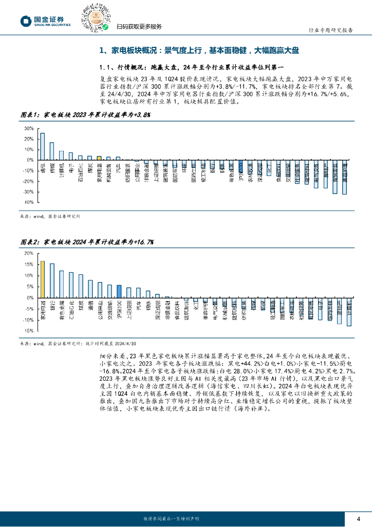 国金证券:家电板块23年报&24年一季报总结:白电&出口链表现亮眼,家电板块配置价值凸显.pdf
