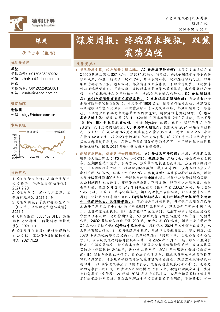 德邦证券:煤炭行业周报:终端需求提振,双焦震荡偏强.pdf