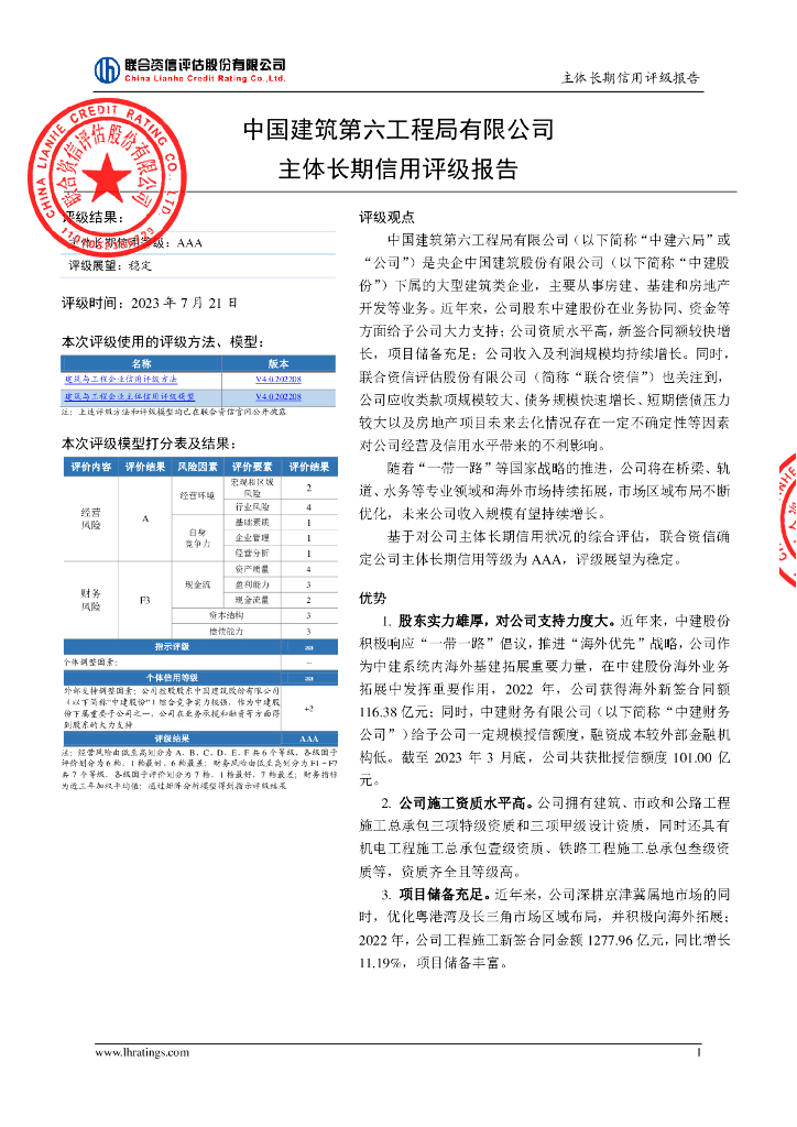 联合资信:中国建筑第六工程局有限公司主体长期信用评级报告.pdf