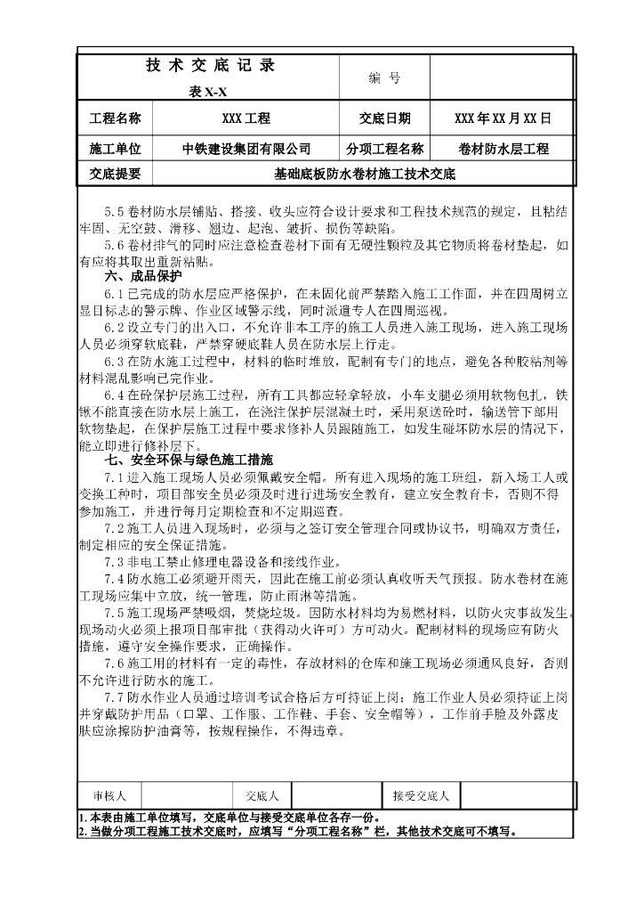 热熔防水卷材施工技术交底底板.doc