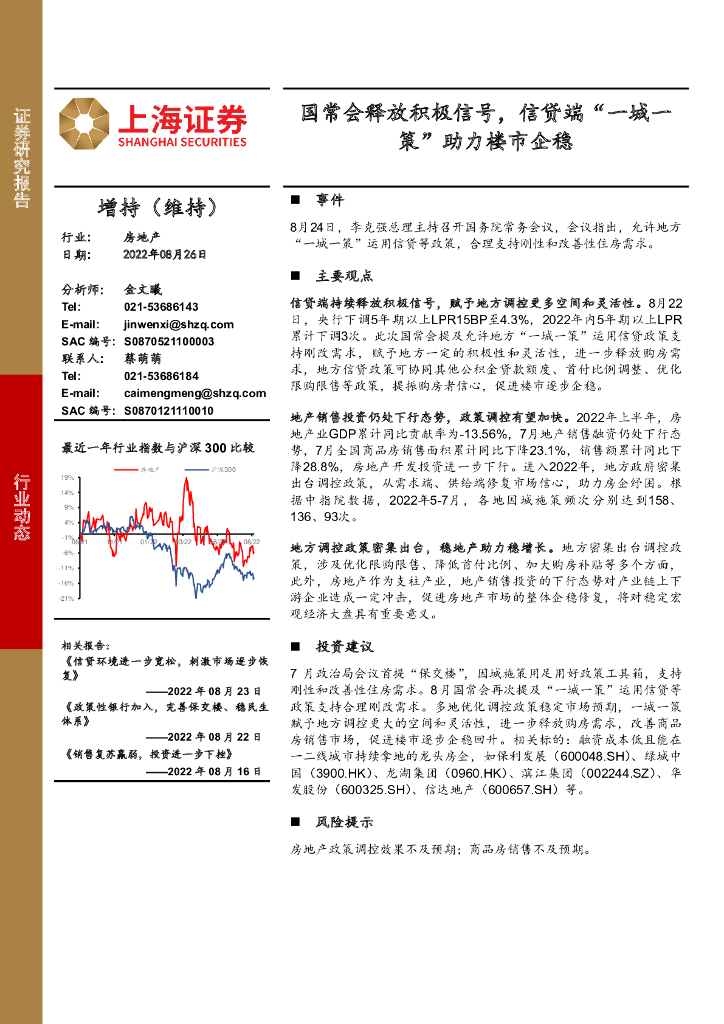 上海证券:房地产:国常会释放积极信号,信贷端“一城一策”助力楼市企稳.pdf