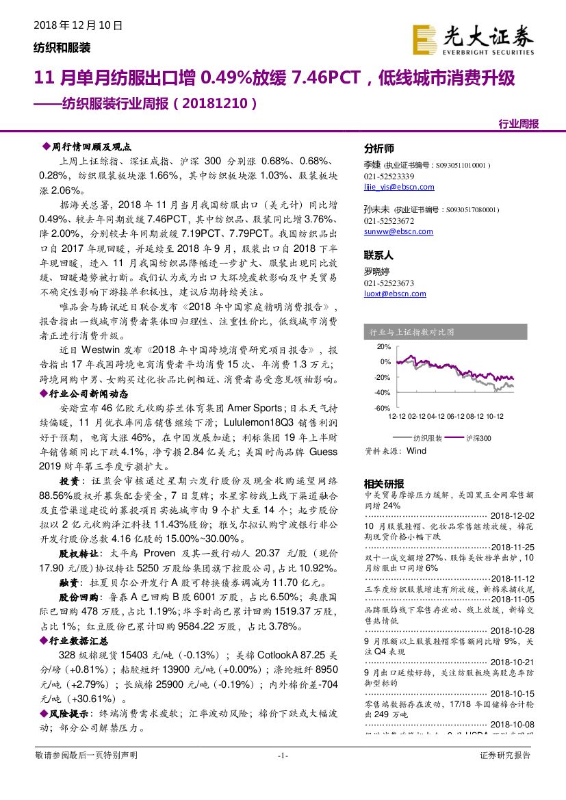 光大证券:纺织服装行业周报:11月单月纺服出口增0.49%放缓7.46PCT,低线城市消费升级.pdf