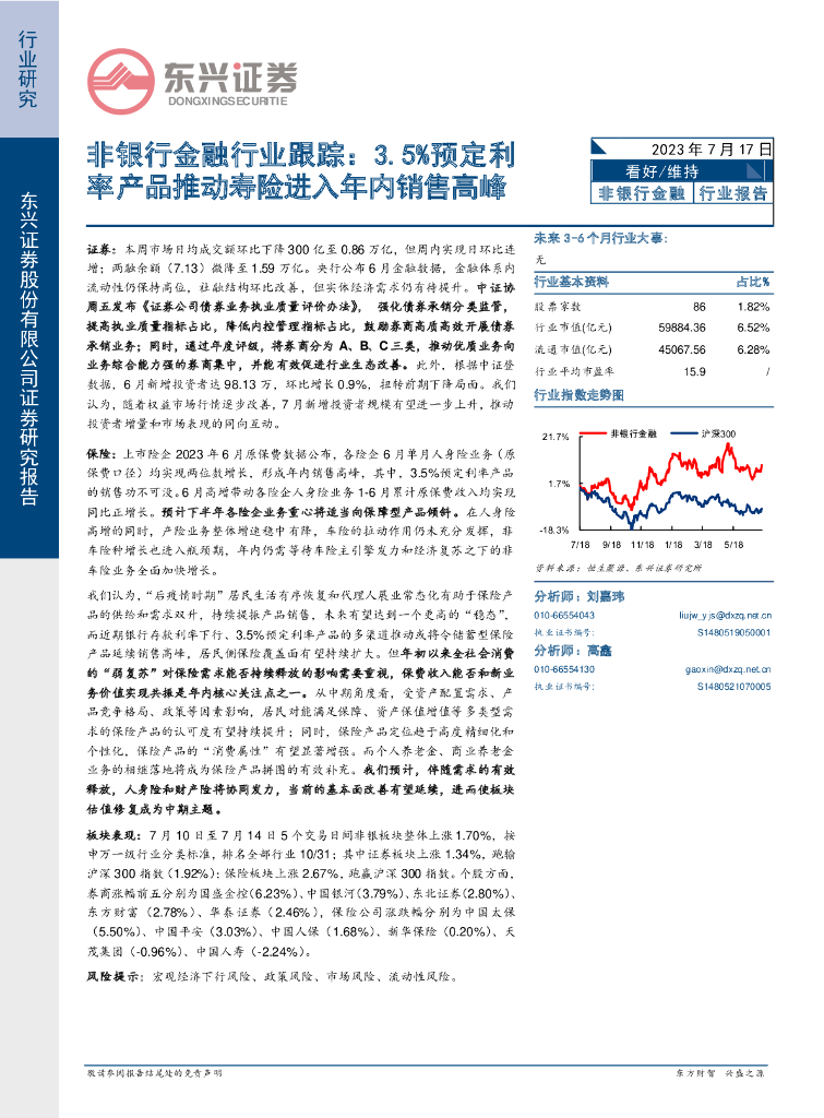 东兴证券:非银行金融行业跟踪:3.5%预定利率产品推动寿险进入年内销售高峰.pdf