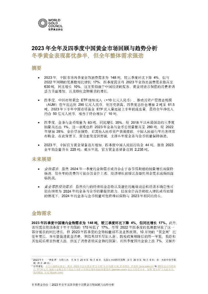 世界黄金协会:2023年全年及四季度中国黄金市场回顾与趋势分析报告.pdf