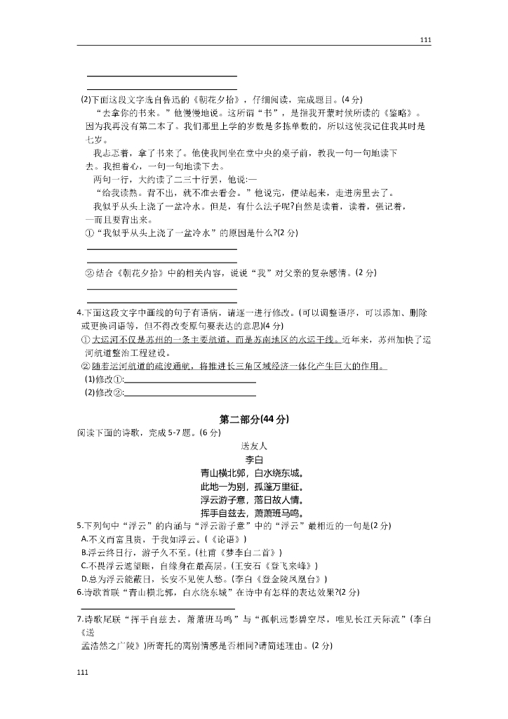 2020年苏州市中考语文模拟试卷(五)附答案.doc