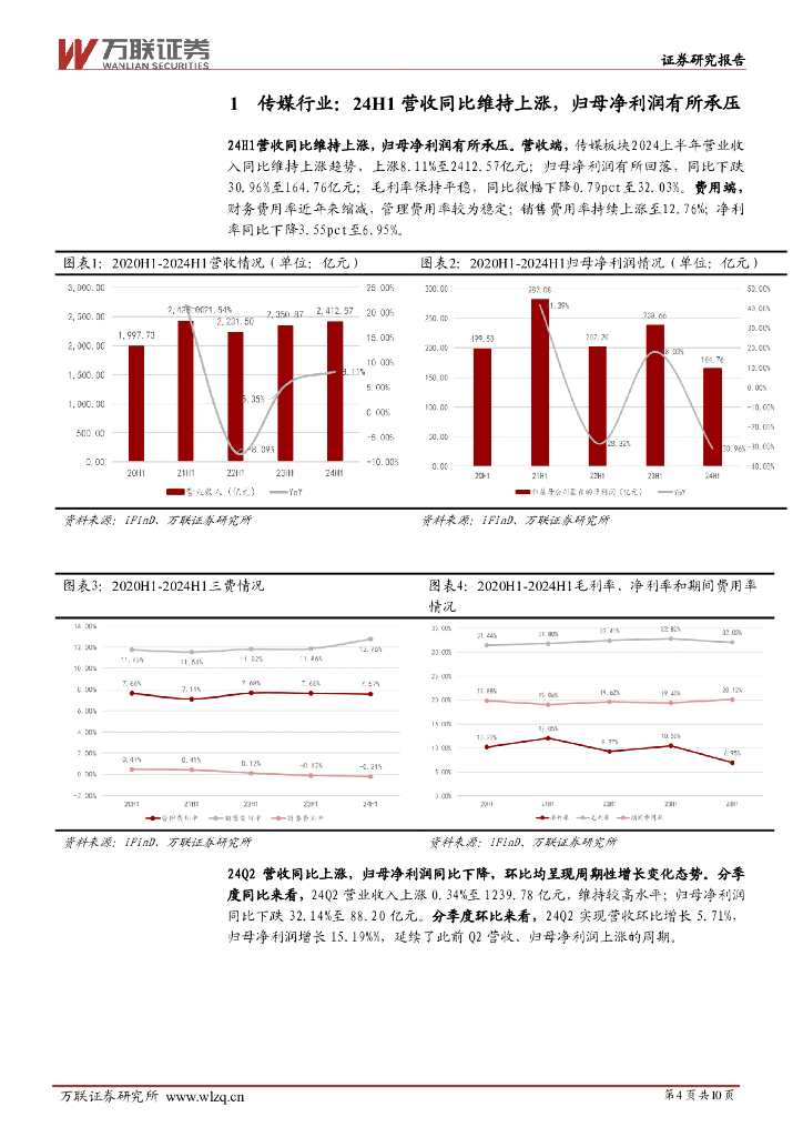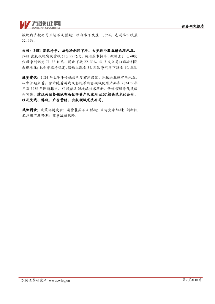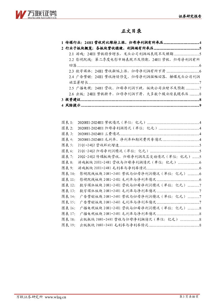 万联证券:传媒行业24年中报综述:营收稳健增长,利润有所承压.pdf