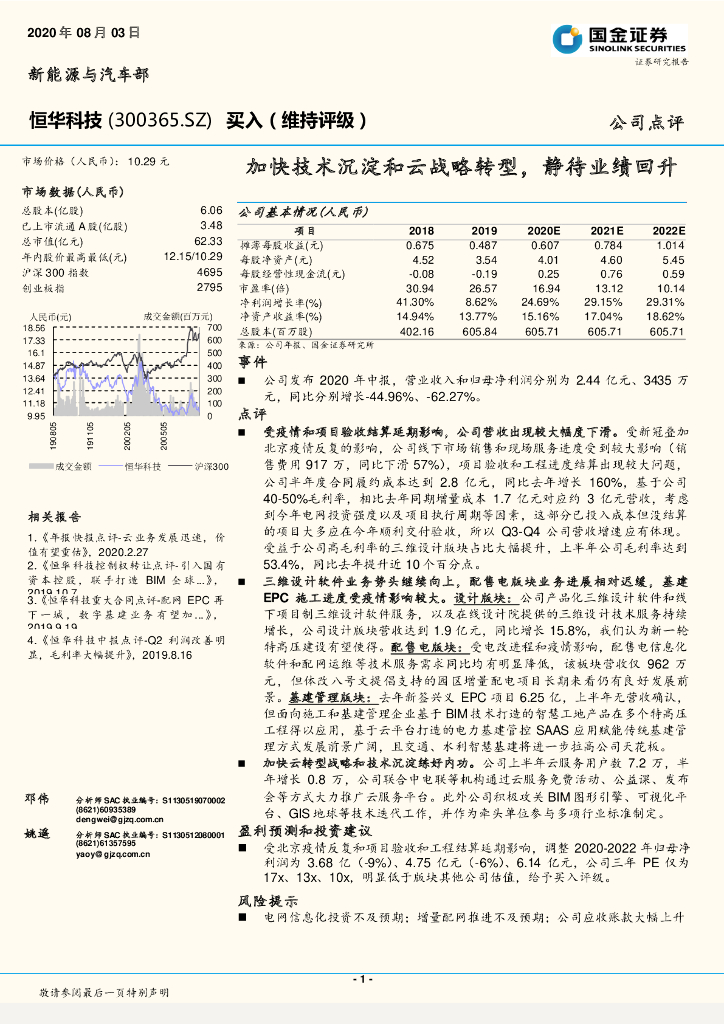 国金证券:恒华科技(300365)-加快技术沉淀和云战略转型,静待业绩回升.pdf