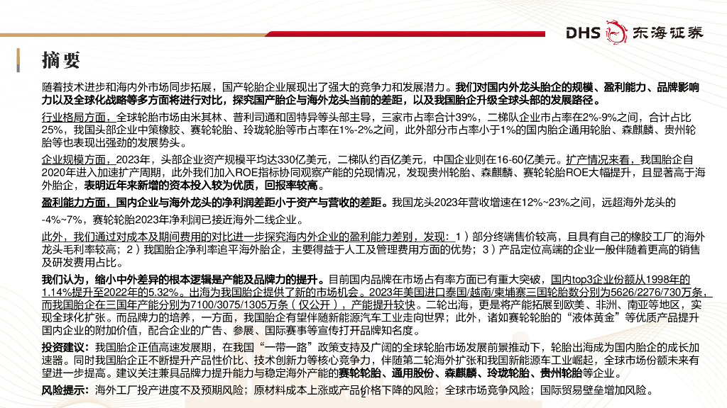 东海证券:轮胎行业深度报告:国内轮胎企业追赶全球头部进程几何.pdf