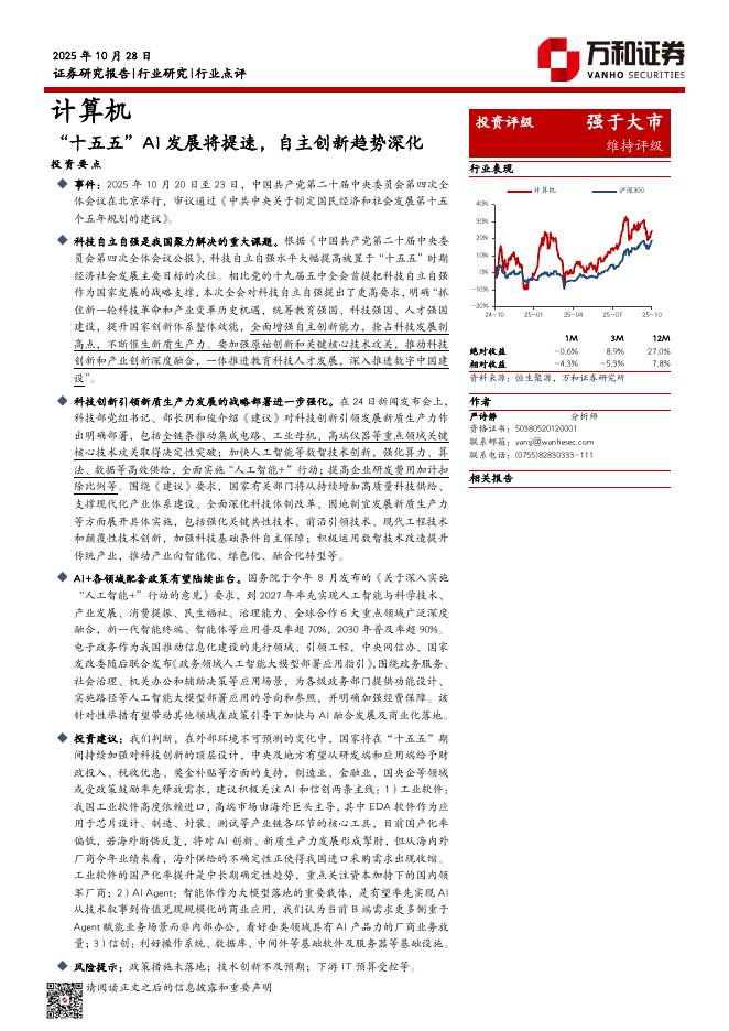 万和证券:计算机:“十五五”AI发展将提速,自主创新趋势深化.pdf