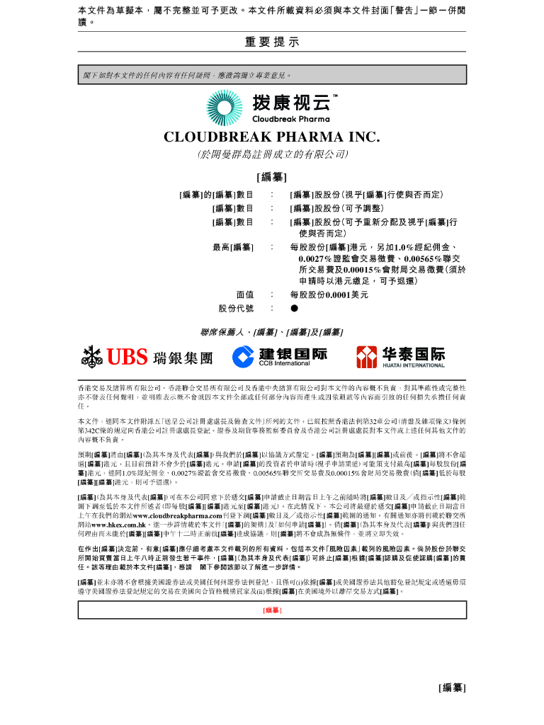 Cloudbreak Pharma拨康视云港交所主板IPO上市招股说明书(2024年12月更新版).pdf