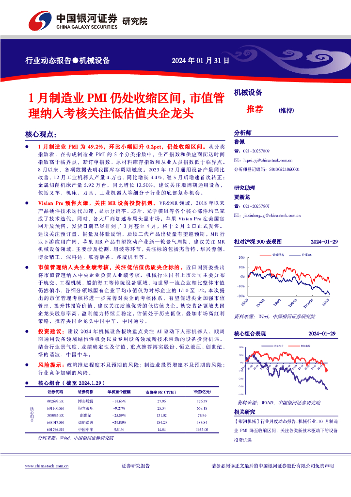 中国银河:1月制造业PMI仍处收缩区间,市值管理纳入考核关注低估值央企龙头.pdf
