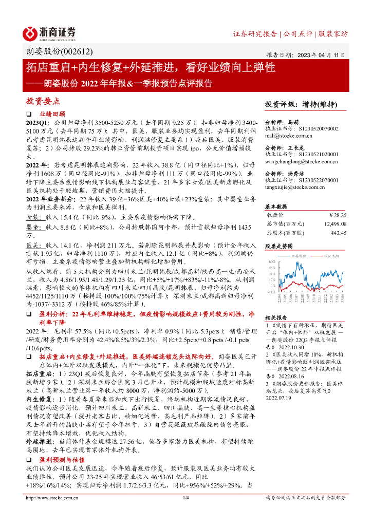浙商证券:朗姿股份2022年年报&一季报预告点评报告:拓店重启+内生修复+外延推进,看好业绩向上弹性.pdf
