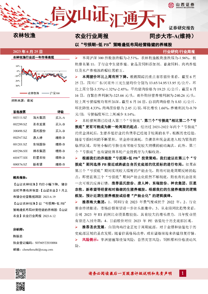 山西证券:农业行业周报:以“亏损期+低PB”策略逢低布局经营稳健的养殖股.pdf