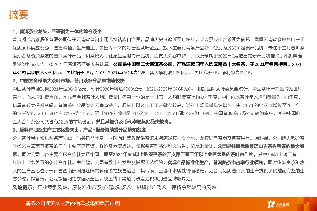 天风证券:食品饮料:澜沧古茶-普洱茶业龙头,产研销为一体的综合茶企.pdf