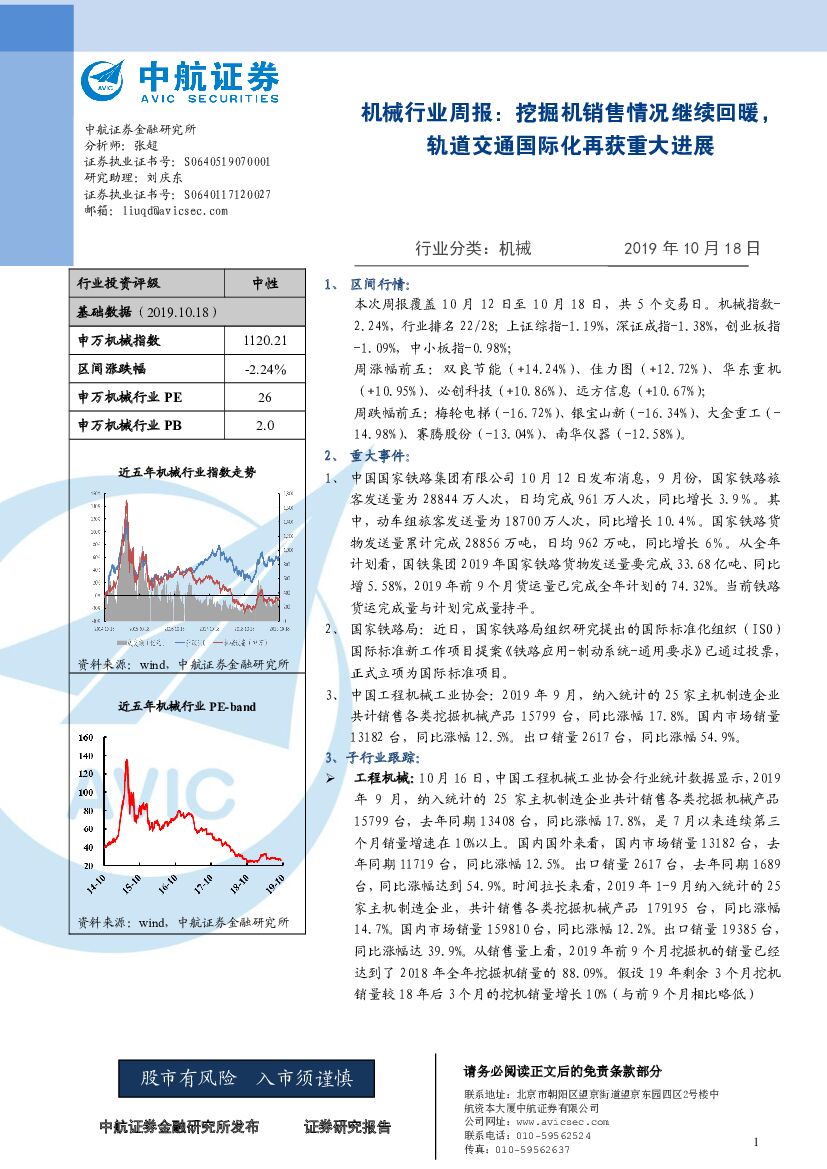 中航证券:机械行业周报:挖掘机销售情况继续回暖,轨道交通国际化再获重大进展.pdf