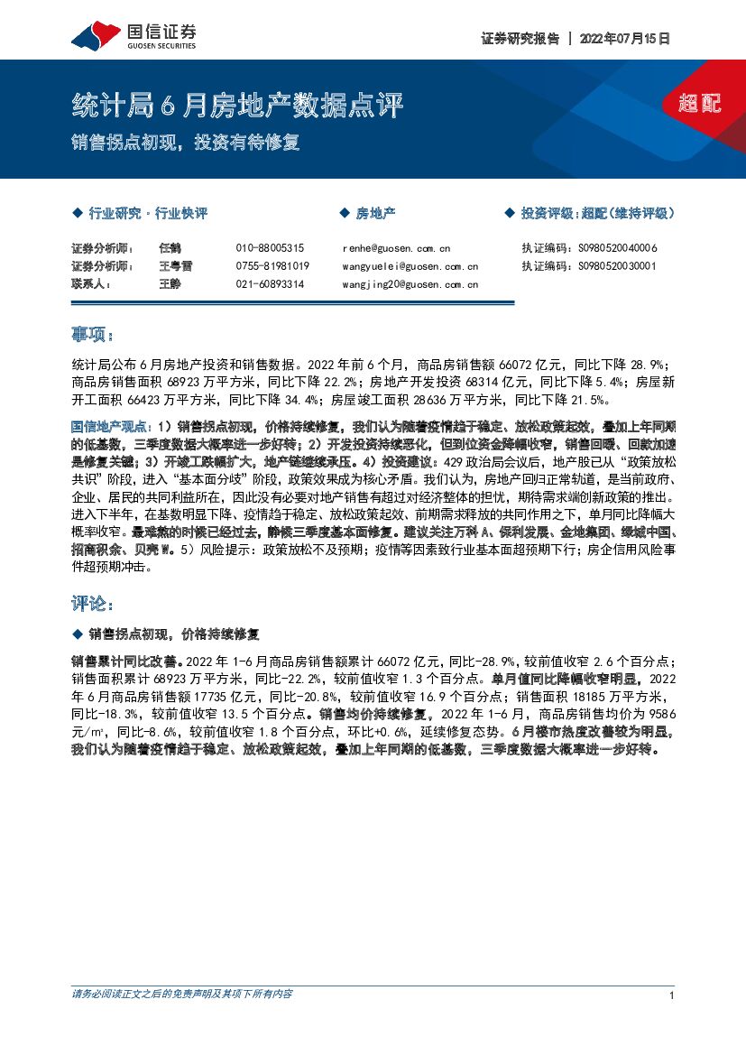 国信证券:统计局6月房地产数据点评:销售拐点初现,投资有待修复.pdf