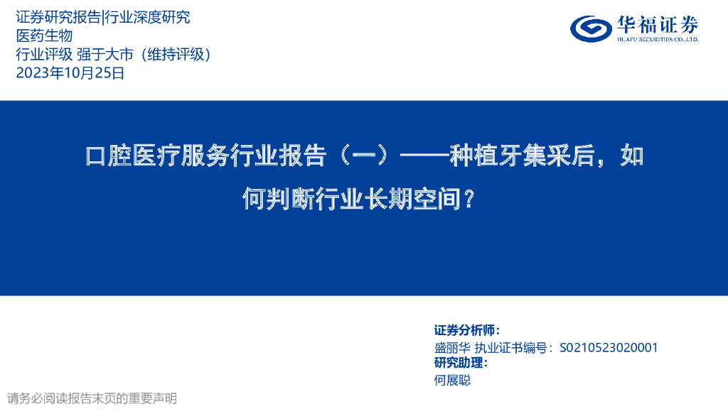 华福证券:口腔医疗服务行业报告(一):种植牙集采后,如何判断行业长期空间?.pdf