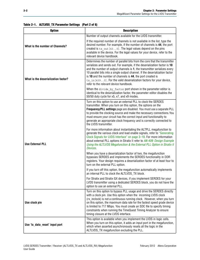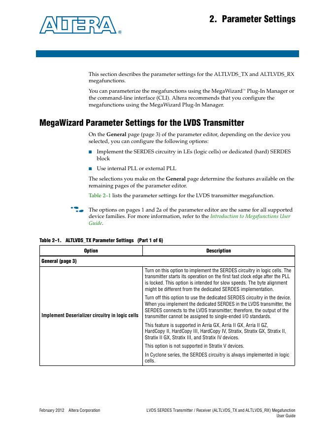 ALTERA LVDS SERDES Transmitter / Receiver (ALTLVDS_TX and ALTLVDS_RX) Megafunction 用户指南.pdf