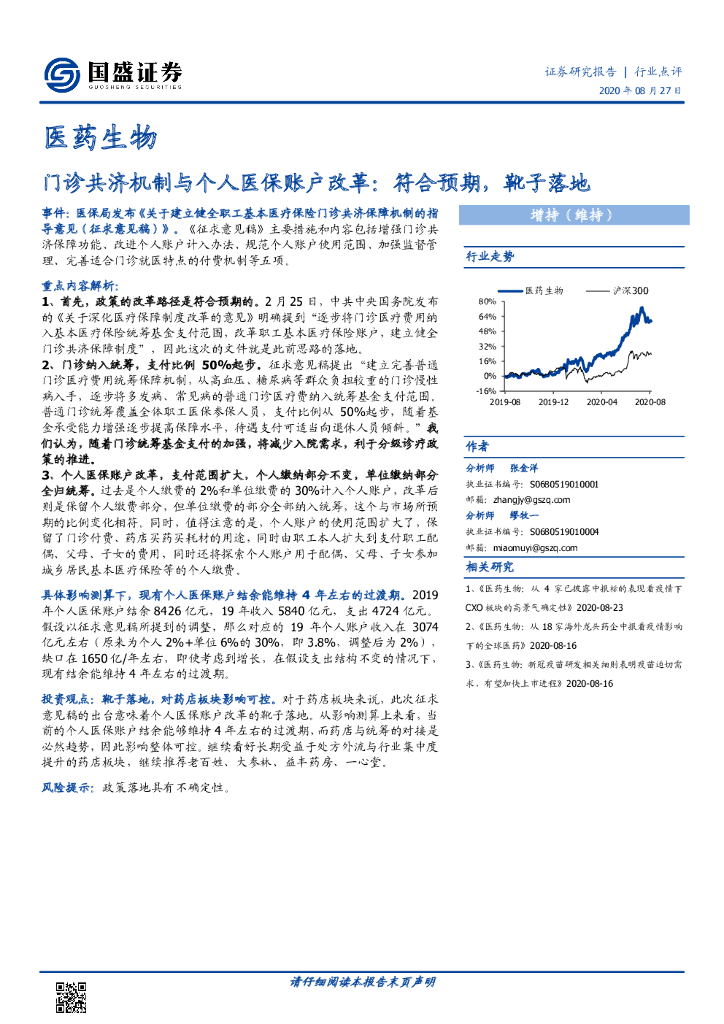 国盛证券:医药生物:门诊共济机制与个人医保账户改革:符合预期,靴子落地.pdf