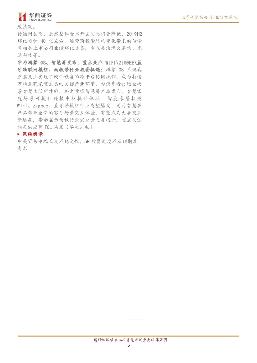 华西证券:通信行业周报:中国移动无线资本开支不及预期,华为鸿蒙开启物联网新时代.pdf