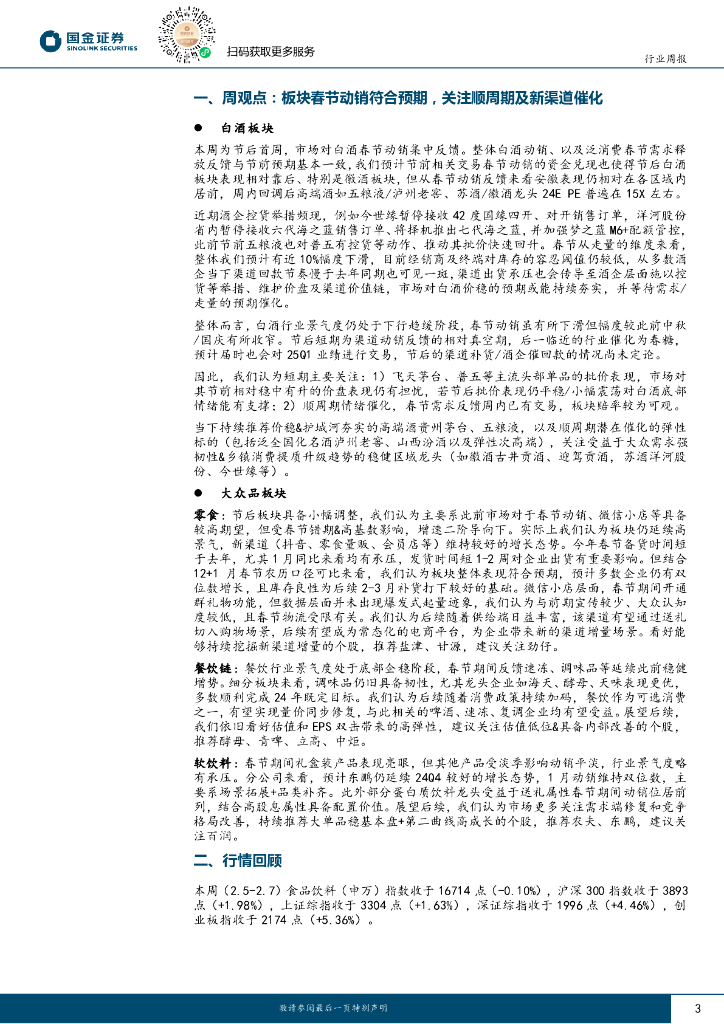 国金证券:食品饮料行业周报:板块春节动销符合预期,关注顺周期及新渠道催化.pdf