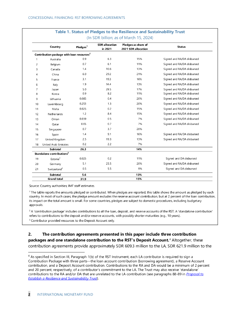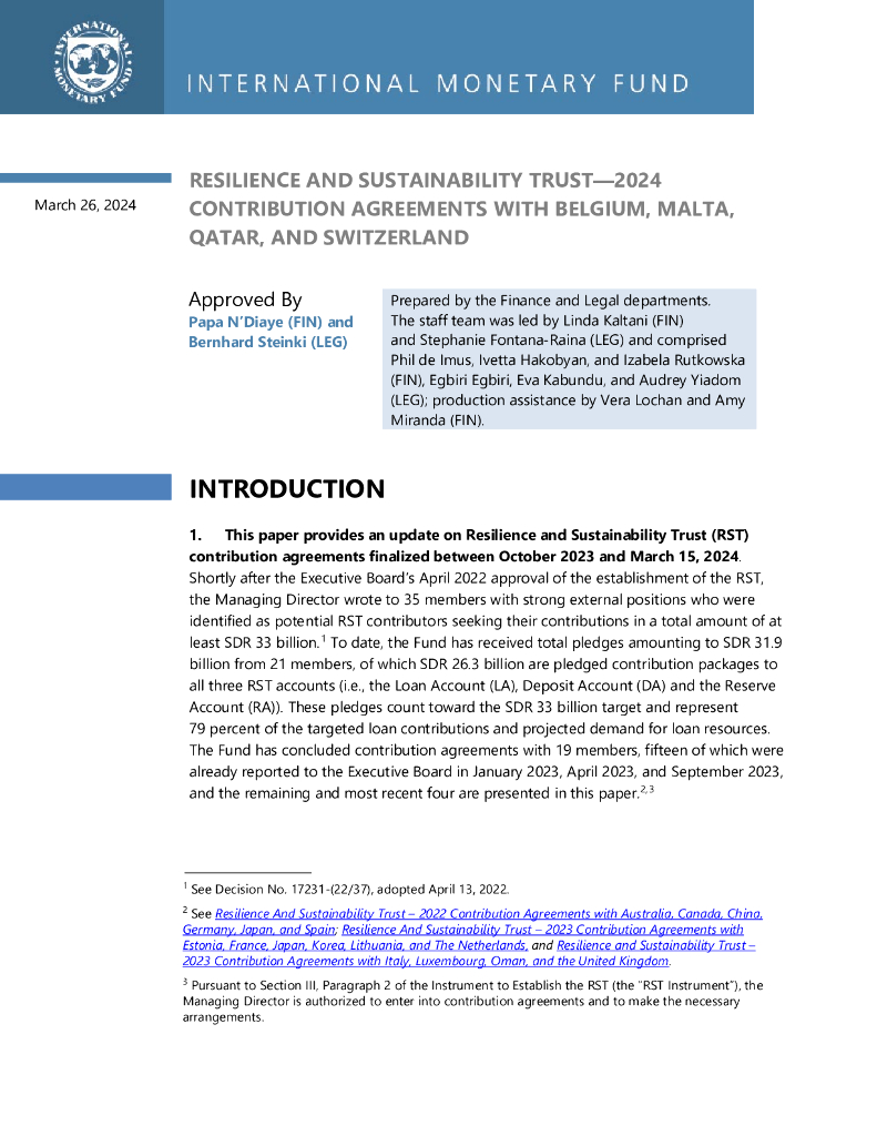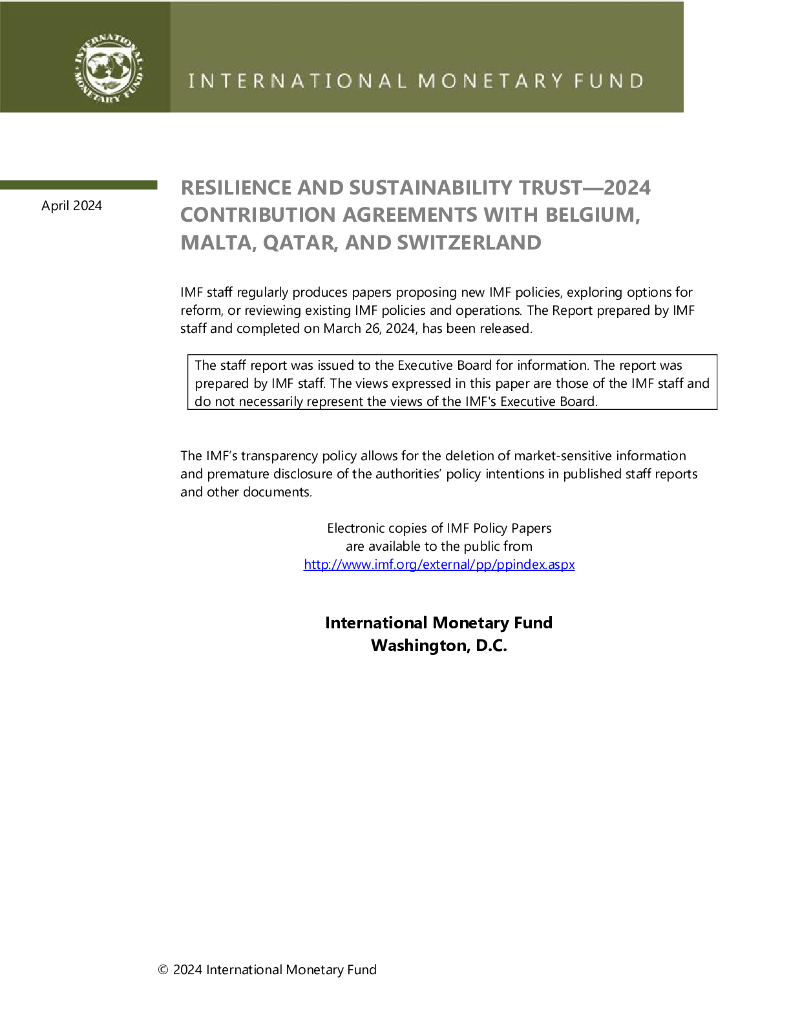 国际货币基金组织:韧性和可持续性信托基金-2024年与比利时、马耳他、卡塔尔和瑞士的捐款协议报告.pdf