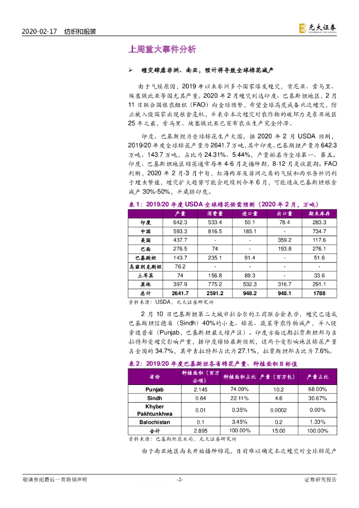 光大证券:纺织服装行业周报:纺服企业增加疫情防护用品产线,关注全球蝗灾对棉价影响.pdf