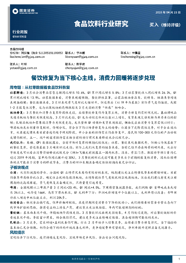 国金证券:食品饮料行业研究:餐饮修复为当下核心主线,消费力回暖将逐步兑现.pdf