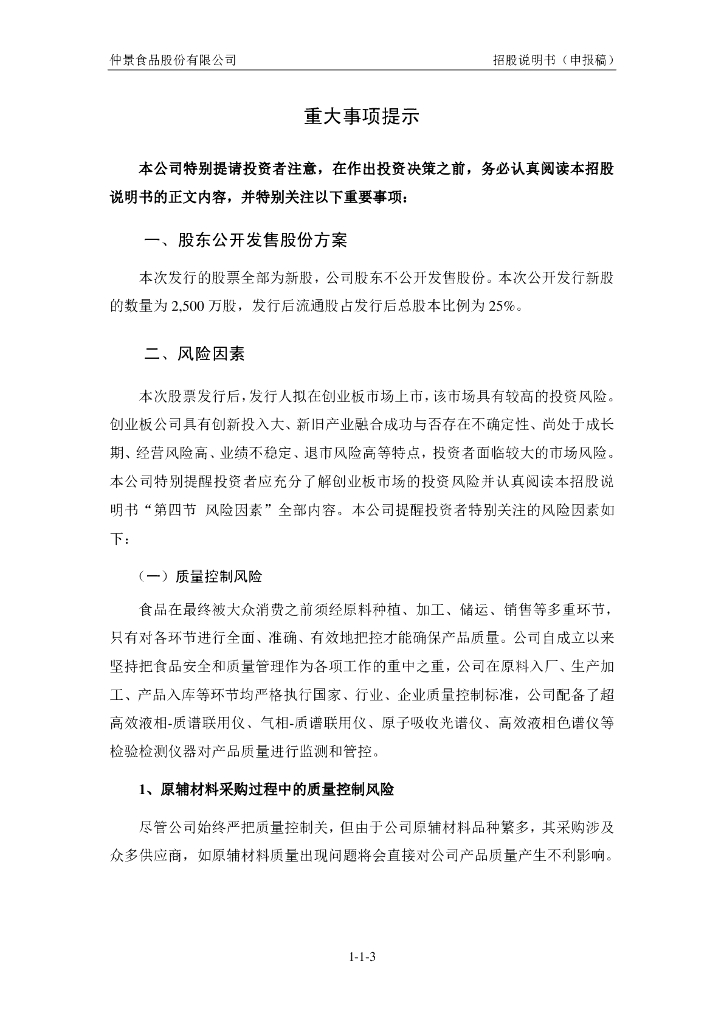 仲景食品股份有限公司深交所创业板IPO上市招股说明书.pdf