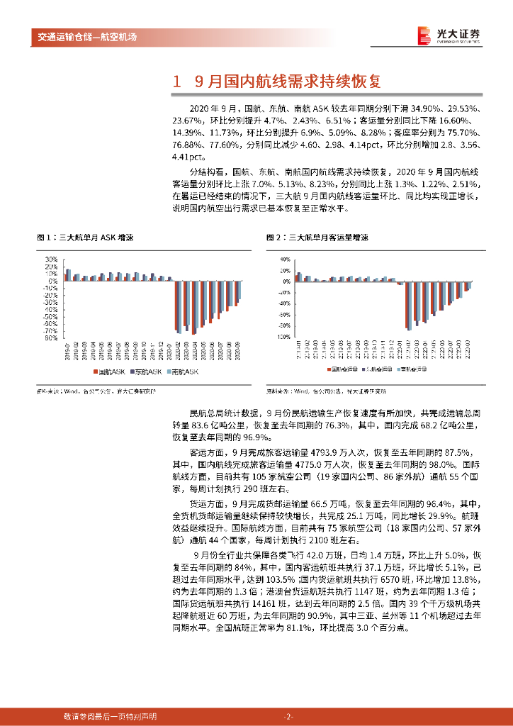 光大证券:航空运输业2020年9月经营数据点评:国内航线需求持续恢复,新航季北上广互飞航班数量提升明显.pdf