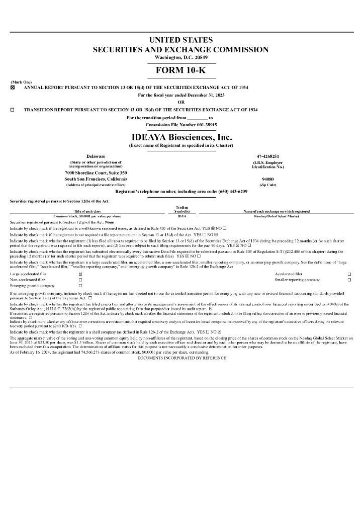 IDEAYA Biosciences, Inc.(IDYA)2023财年年度报告(英文版).pdf