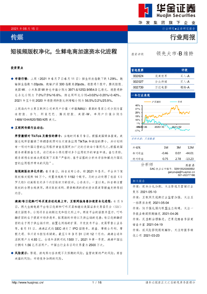 华金证券:传媒行业周报:短视频版权净化,生鲜电商加速资本化进程.pdf