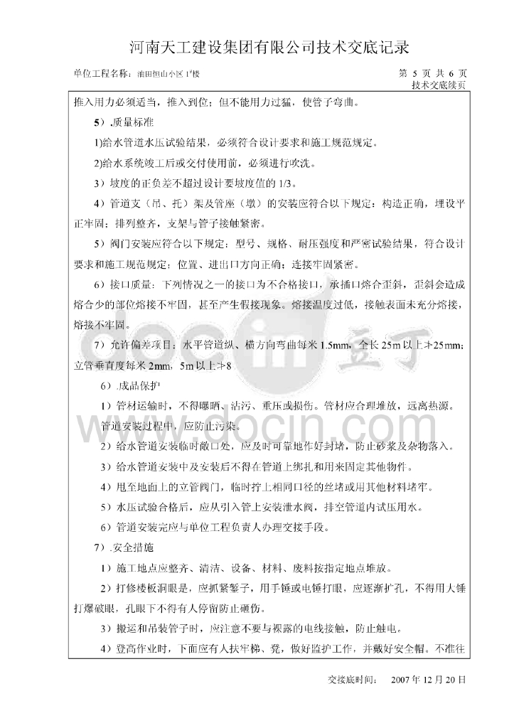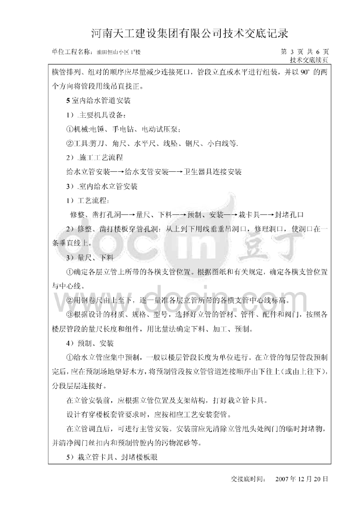 油田恒山小区住宅楼给排水施工技术交底.pdf