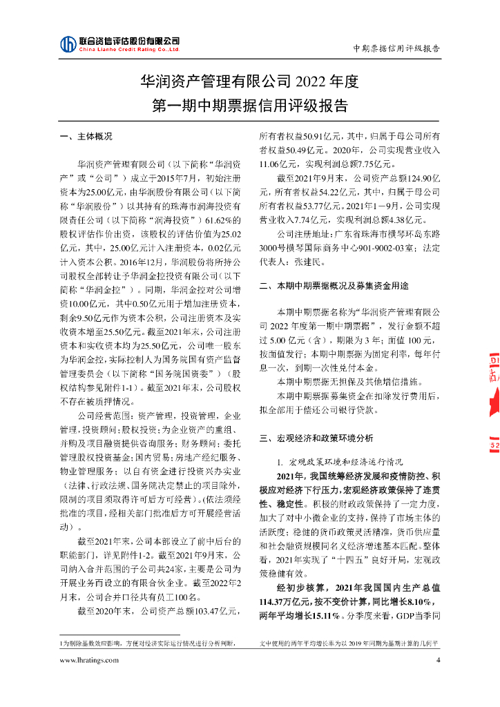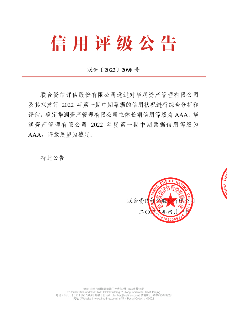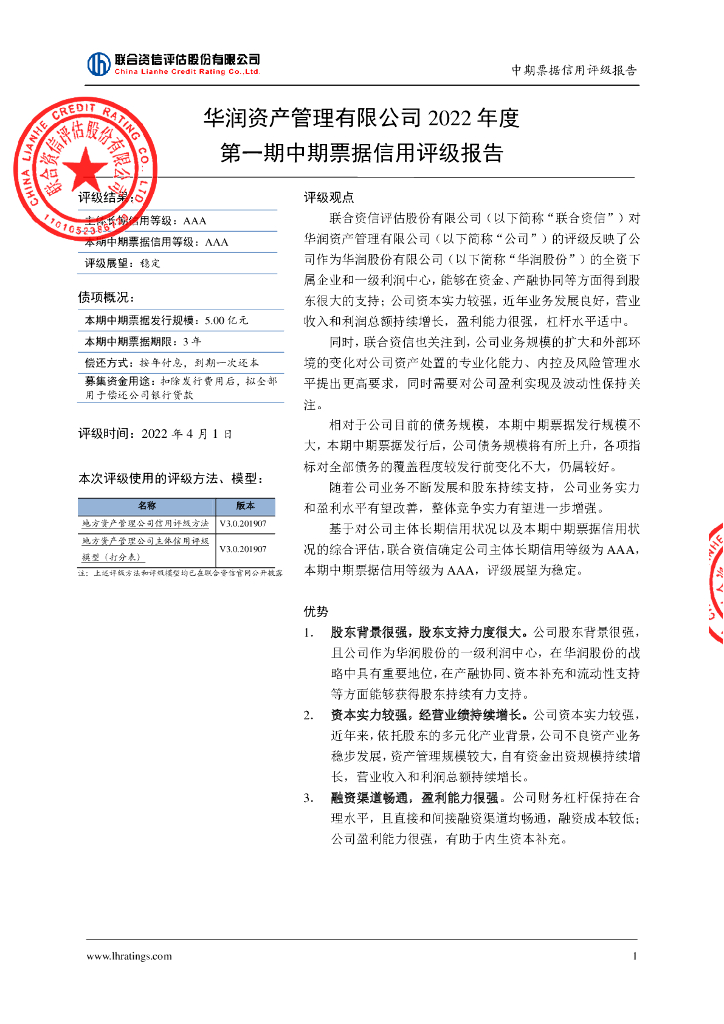 联合资信:华润资产管理有限公司2022年度第一期中期票据信用评级报告.pdf