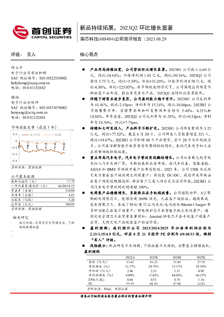 首创证券:南芯科技(688484)-公司简评报告:新品持续拓展,2023Q2环比增长显著.pdf