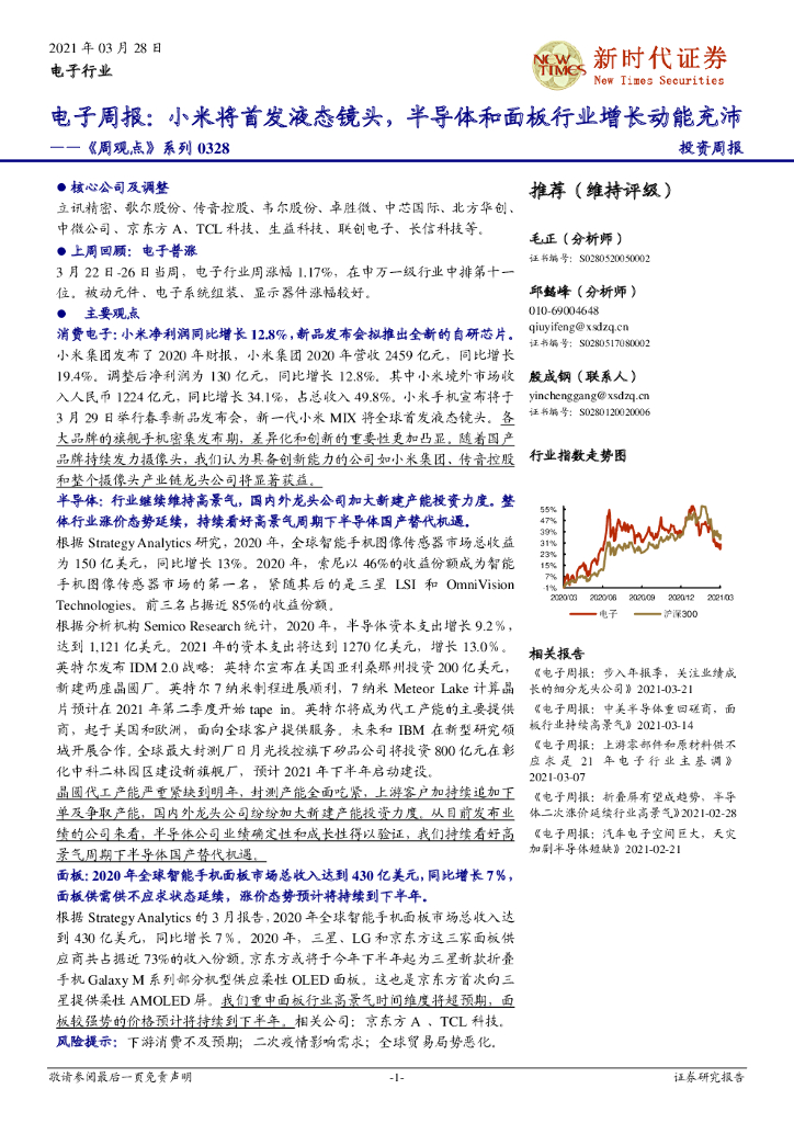新时代证券:电子周报:小米将首发液态镜头,半导体和面板行业增长动能充沛.pdf