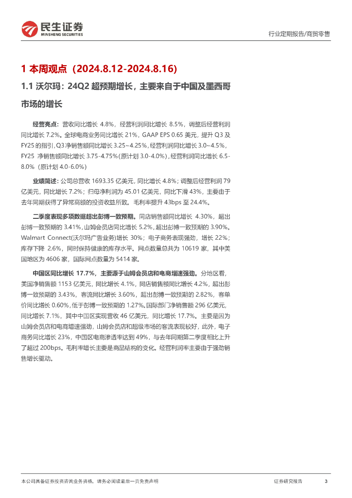 民生证券:零售周观点:沃尔玛二季度增长超预期,中国区山姆会员店贡献增长.pdf