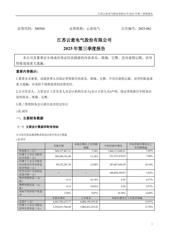 300304-云意电气:2025年三季度报告.pdf