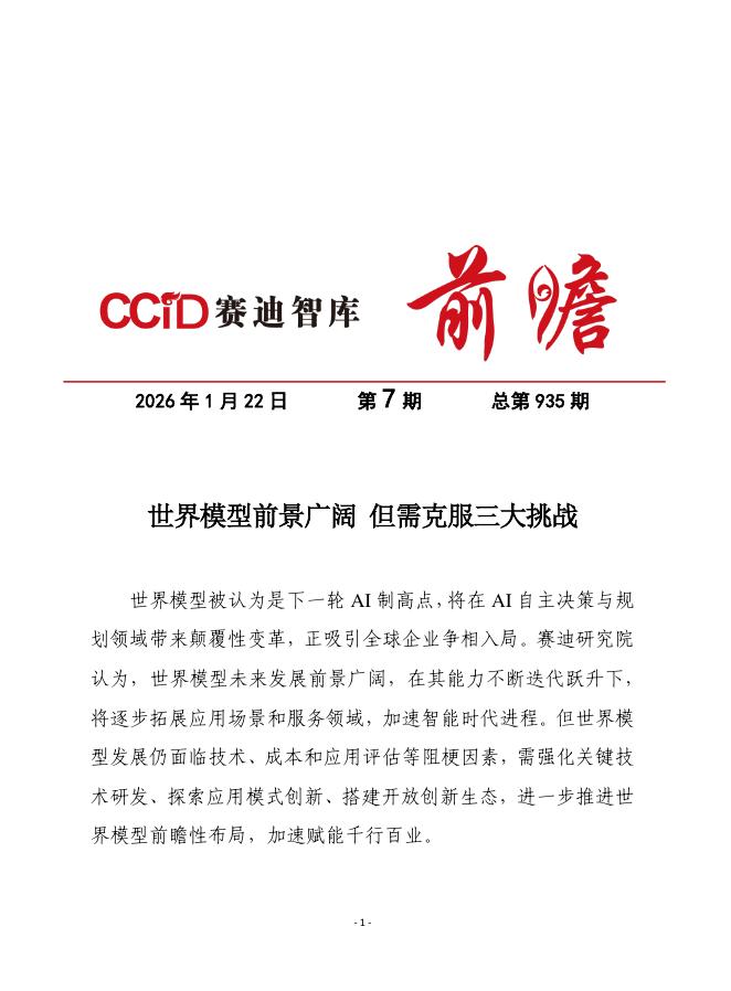 赛迪前瞻:2026年第7期(总935期):世界模型前景广阔,但需克服三大挑战.pdf