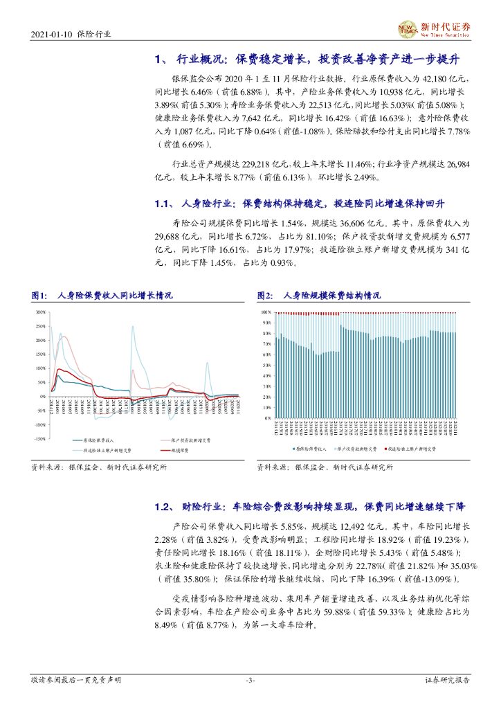 新时代证券:保险行业2020年1至11月概况:投资改善净资产环比提升明显,车险综合费改压降保费增速.pdf