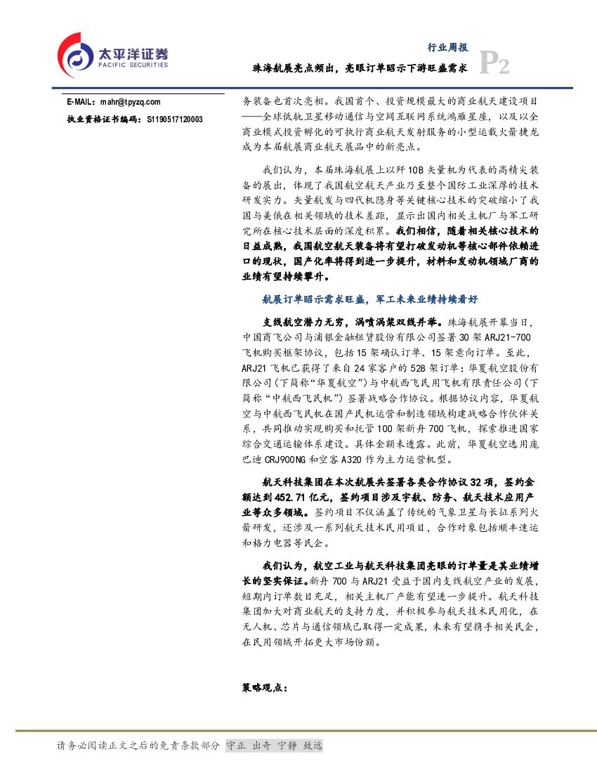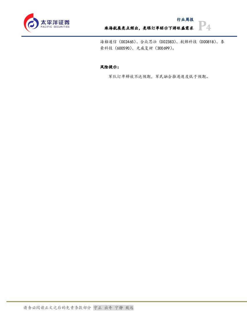 太平洋证券:军工行业周报:珠海航展亮点频出,亮眼订单昭示下游旺盛需求.pdf