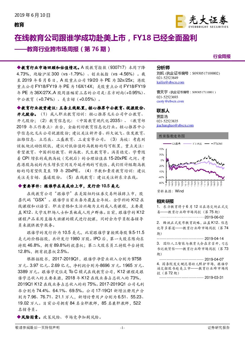 光大证券:教育行业跨市场周报(第76期):在线教育公司跟谁学成功赴美上市,FY18已经全面盈利.pdf